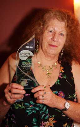 (<< Pic: Lorraine Pfitzner (A.B.B.A. Secretary) with CMAA award)